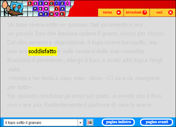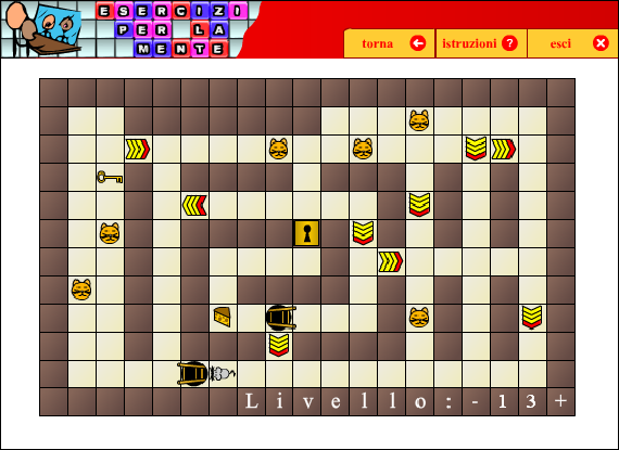 Il compito consiste nel guidare il topolino nel labirinto, alla ricerca della strada che conduce al formaggio.