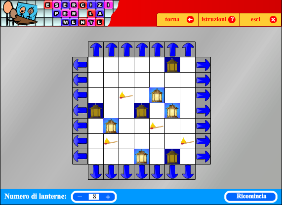 Il compito consiste nell'accendere tutte le lanterne, spostando un fiammifero su ciascuna di esse. Le lanterne rimangono fisse al loro posto, mentre i fiammiferi possono essere spostati cliccando sulle frecce che circondano la griglia. Ciascuna freccia provoca lo spostamento di tutti i fiammiferi che si trovano sulla riga o colonna corrispondente.