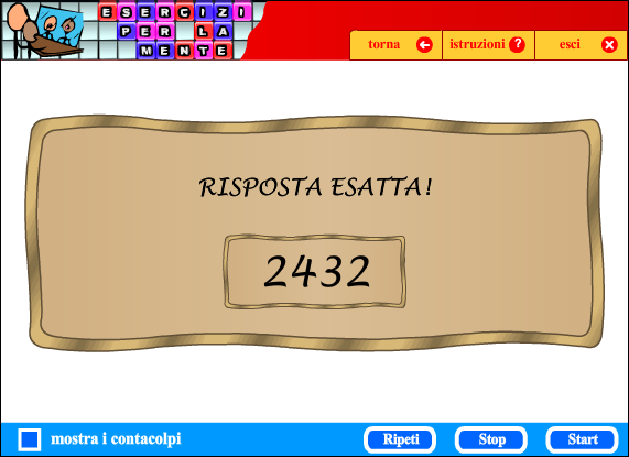 Cliccando su START compaiono sulla matrice alcuni numeri, che vengono nascosti dopo 5 secondi; a questo punto si deve cliccare sulle caselle in ordine crescente, partendo da quella che aveva il numero più piccolo, fino a quella che aveva il numero più grande.