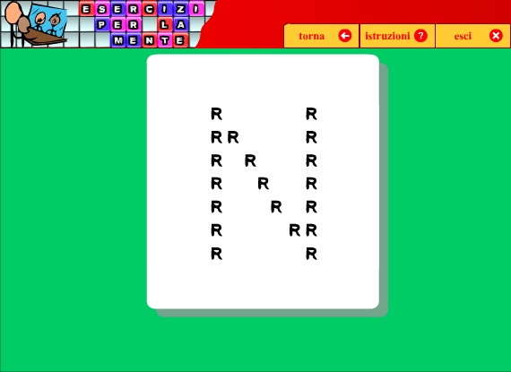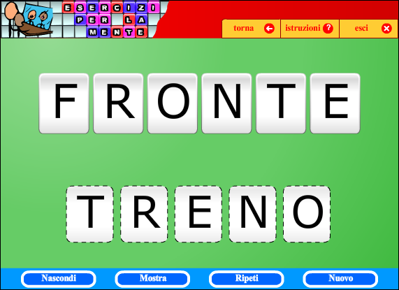All'avvio dell'esercizio vengono mostrate due parole, la prima di sei lettere e la seconda di cinque. Dopo alcuni secondi le lettere vengono nascoste: a questo punto il compito consiste nello spostare le lettere della prima parola, in modo da riscrivere la seconda.