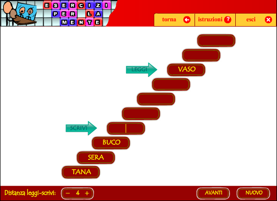 L'esercizio, ispirato ai test N-back, consiste nel ricordare le parole lette e nel riscriverle dopo un certo numero di stimoli.