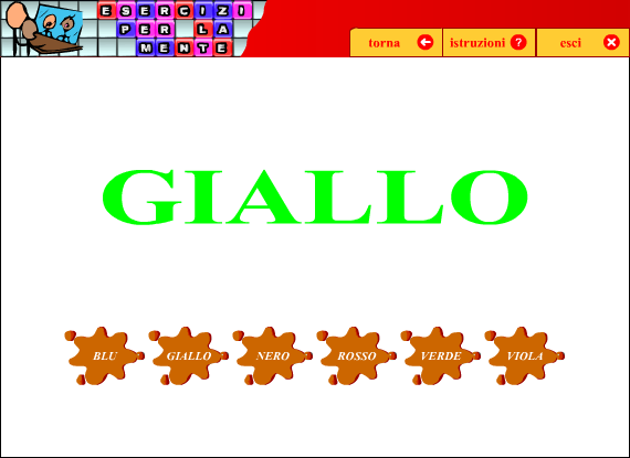 Il compito, ispirato al Test di Stroop, consiste nell'individuare il colore utilizzato per scrivere una parola, vincendo l'interferenza data dal significato della parola stessa (un colore che può coincidere o meno con il target).
